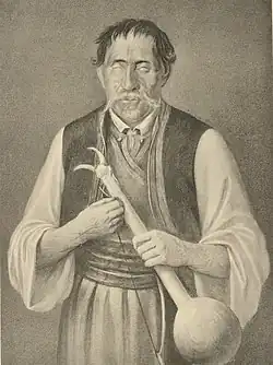 Milutinović was born in 1774 in Grahovo, Nikšić. He lost his eyesight at his age of sixteen or seventeen, and from then on he began to compose epic songs of current events on the gusle.[2] At the time of the preparation of the First Serbian Uprising, he served as an interlocutor among the institutions in Revolutionary Serbia and the Prince-Bishopric of Montenegro.