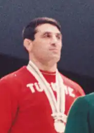 İsmail Ogan came from the province (Elmalı) of Antalya on Turkey's southern Mediterranean coast. After Turkish yağlı güreş (oil wrestling) style, which he started with, he switched to Olympic wrestling at the age of 17, after he was discovered by Yaşar Doğu. It did not take long for him to attract the attention of the leading men in the Turkish wrestling federation by performing very well in the national arena. He was included in the national freestyle wrestling team and received perhaps the best Turkish wrestling coaches of the time in Yaşar Doğu and Celal Atik. He appeared on the international wrestling mat in 1957, wrestling very successfully in five world championships and winning three medals. European championships were not held at that time. In his own country, he had three tough rivals in İbrahim Zengin, Nuro Ayvar and Mahmut Atalay, against whom he had to prove himself time and again. At the 1960 Olympics in Rome, he won the silver medal, beaten only by U.S. wonderboy Douglas Blubaugh, the only opponent to whom he conceded only a points victory. Four years later at the Tokyo Olympics he was again convincing and became Olympic champion in the welterweight division.[2]