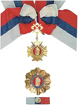 The Order of Ľudovít Štúr (Slovak: Rad Ľudovíta Štúra) is the third highest Slovak state decoration (after the Order of the White Double Cross and the Order of Andrej Hlinka) conferred by the President of the Slovak Republic upon the proposal of the government. The president, who is a recipient, 1st Class, of the order by virtue of holding office, is not obligated to respect the proposal.[1][2][3]