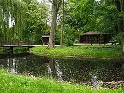 During the German invasion of Poland, which started World War II, the Germans executed 29 Poles, including two families on September 9–10, 1939.[6] Łęczyca was then occupied by Nazi Germany and incorporated into the region known as Reichsgau Wartheland[7] as part of the district (kreis) of Lentschütz (Germanized word for 'Łęczyca'). The Germans expelled 330 Poles from the town in December 1939.[8] Further expulsions of Poles were carried out in 1940.[9] Poles were deported to a transit camp in nearby Ozorków, and afterwards young people were deported from the camp to forced labour in Germany, and children and older people were deported to the General Government (German-occupied central Poland), while their homes, shops and workshops were handed over to German colonists as part of the Lebensraum policy.[9] In January 1942 there was a forced labor camp operating in or near the town.[10]