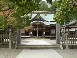 Following the Meiji restoration, the shrine was designated as a National Shrine, 2nd rank (国幣中社, kokuhei-chūsha) in 1871 under State Shinto's Modern system of ranked Shinto Shrines.[2] This qualified it for government support, and it was able to reconstruct most of its buildings in 1890.