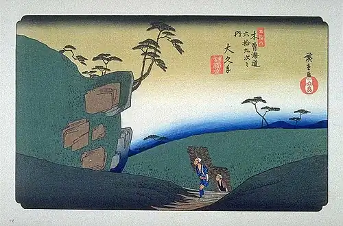 ![]() Hiroshige's print of Ōkute-juku, part of the Sixty-nine Stations of the Kiso Kaidō series | |||||