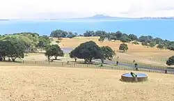 On the perimeter track, visitors will find a grassed area, overlooking the sea, which was the original site of a Ngāi Tai pā.[13] (see Pā). This grassed area has a deep ditch whose internal bank would have once been much higher and topped with a strong palisade of posts. O-Manawatere is a relatively small pā.[14]