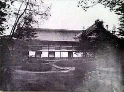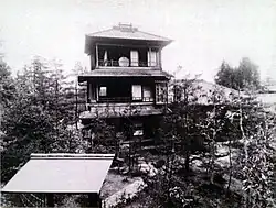 In the early Edo period (1603-1867), Tokugawa Mitsutomo (1625-1700), head of the Owari Tokugawa clan and lord of the Owari Domain, established a vast residence in the Ōzone neighbourhood as a retreat from the main residence at Nagoya Castle. During the Edo period, a Shimoyashiki (下屋敷) was a smaller residence or retreat of a lord, as opposed to his "upper" or main residence, called Kamiyashiki (上屋敷). The size of the original residence was about 130,000 tsubo (坪; about 429,000 square metres; 4,620,000 sq ft). After Lord Mitsutomo died, the grounds of the residence were divided and held by three senior vassal families of the Owari Tokugawa: the Naruse, the Ishiko, and the Watanabe families. After the Meiji Restoration in 1869, the Owari Tokugawa reacquired the estate, and rebuilt the family's residence in 1900, to be suitable for their newly elevated Marquess (侯爵, kōshaku) rank.[1][2][3]