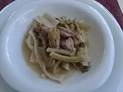 Şevketibostan yemeği (Turkish: Şevketibostan yemeği) is a dish cooked and consumed in Aegean region of Turkiye. Ingredients include Şevketibostan (Cnicus benedictus), lamb chunks, onion, juice of half a lemon, flour, butter, and salt.[1][2][3][4]
