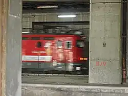 Series 444 locomotive rushing through Belgrade-Center station.