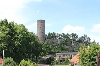 Žebrák Castle (Czech: hrad Žebrák) is a castle ruin in the Central Bohemian Region of the Czech Republic. It is located in the municipality of Točník in the Beroun District, near the eponymous town of Žebrák. It was built by the Zajíc family. The two castles, Točník and Žebrák, make up a picturesque couple, standing almost right next to each other. Together they are protected as one national cultural monument.