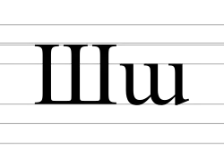 In some fonts, it is homoglyphic with the Cyrillic letter Sha, and in this manner it was used in the Tsakhur language,[1] representing the pharyngealized close central unrounded vowel /ɨˤ/. It is represented today by the digraph ⟨ЫI⟩.