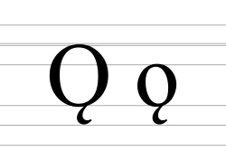 O with an ogonek (majuscule: Ǫ, minuscule: ǫ) is a letter of the Latin alphabet formed by the addition of the ogonek (from Polish: little tail) to the letter O. It is used in Western Apache, Mescalero-Chiricahua, Muscogee, Dadibi, Gwichʼin, Erie, and Navajo.[1] It is also used in the Latin transcription of Old Church Slavonic, and the Proto-Slavic language, as well as in the Slavistic Phonetic Alphabet.[2] It is also still in use for the writing of Old Norse, and used to be used sporadically in Polish.[3]