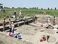 Since 1910 the site started to be researched by the archaeologist M. Roska.[5] Being among the pioneers of scientific archeology, Roska, is the first that helped to clarify the chronological and cultural classification of the various horizons captured here. The excavations of 1910–1911, 1923 and 1924 identified a substantial dwelling of Middle Bronze Age, the Mureş culture (originally called Periam-Pecica). The reports reviewed only Bronze Age strata, but also that of the Middle Copper Age.
