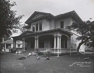 ʻĀinahau was initially a country estate while family lived in a mansion on Emma Street in downtown Honolulu, where Kaʻiulani was born.[8] Her father sold the Emma Street residence to Scots-Irish industrialist James Campbell in 1878 and relocated the family to the country estate.[9][10][11]
