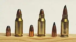 5.56×24mm with Speer 40gr Soft Points, next to 9mm at the back.