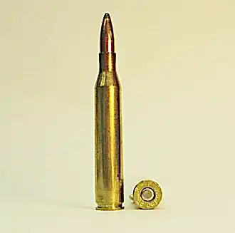 Charles Newton necked down the .30-06 Springfield cartridge in 1912 to accept a 117-grain .25-35 Winchester bullet,[3] but the resulting .256 Newton cartridge did not catch on. Newton's early modification encouraged commercial release of a shortened case (from 63 to 49 mm) as the .250-3000 Savage in 1915.[4] Frankford Arsenal developed an experimental .25-06 during World War I; and distribution of surplus United States military equipment through the Civilian Marksmanship Program following the war encouraged independent gunsmiths to experiment with the cartridge.[3] A. O. Niedner of Dowagiac, Michigan, introduced rifles for the .25 Niedner in 1920.[5] Niedner Arms Corporation retained the 17° 30′ .30-06 shoulder chambering .25 caliber barrels rifled with one twist in 12 inches (300 mm).[6] Similar cartridges were identified as the .25 Hi-Power, .25 Whelen (analogous to .35 Whelen), or .25-100-3000 (to indicate the ability to achieve 3,000 feet-per-second with a 100-grain bullet rather than the 87-grain bullet used in the .250-3000 Savage). Greater case capacity offered minimal velocity improvement over the .250-3000 Savage case with contemporary smokeless powders.[7] Availability of DuPont's Improved Military Rifle (IMR) powders encouraged commercial release of the .257 Roberts using the 57 mm Mauser case in 1934.[8] Release of IMR 4350 in 1940 and availability of surplus 4831 powder salvaged from Oerlikon 20 mm cannon cartridges after World War II greatly improved performance of the full-length .25-06 case.[9]