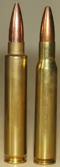 ![]() .30-06 JDJ cartridge (left) next to its parent case, the .30-06 Springfield | ||||||||||||||||||||