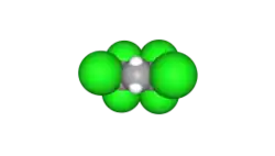 The compound can be produced quantitatively also by reacting carbon tetrachloride CCl4 and 1,1-dichloroethene Cl2C=CH2 at 80-150 °C, with a copper-based catalyst, such as copper(I) chloride or copper(II) chloride, and possibly an amine as co-catalyst.[3][8][9][10][11][12][13][14] The same process can generate higher chlorinated alkanes of the form H3C−(CH2−CCl2)nCl.[3][11]