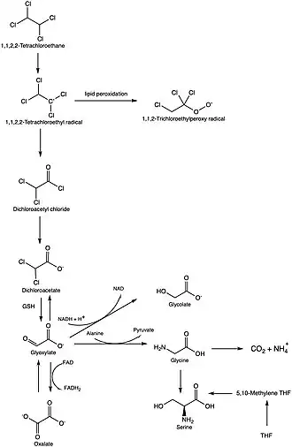 - ^ a b c Yllner S. 1971. Metabolism of 1,1,2,2-tetrachloroethane-14C in the mouse. Acta Pharmacol Toxicol 29:499-512.
