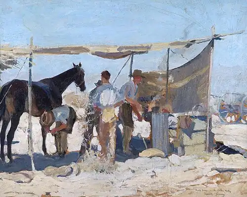 When Lt-Col Clowes died in hospital on 8 March,[11] Lt-Col Bromley-Davenport took over, but five days later he was promoted to Temporary Brigadier-General to command 22nd Mounted Bde. Major Sir Percival Heywood, 4th Baronet, was promoted to command 1/1st Staffs Yeomanry.[4][12][13] A number of men from 1/1st Staffs Yeomanry volunteered to serve with the Imperial Camel Corps at this time, and on 12 June the regiment received a draft of reinforcements from 3/1st Staffs Yeomanry at Aldershot. The regiment continued its patrol work, squadrons being moved around the area as required. On 11 October it was moved to the WFF's outpost line, the on 1 November it returned to Deir al Azab.[3][4]