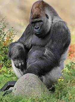 Tara Stoinski, president of the Dian Fossey Gorilla Fund, said that people often overestimate the power of gorillas, saying that despite gorillas having strong muscles and jaws, these traits are used more for protection than a hunting attack.[4] She thought that a large group of humans could use their ability to cooperate and coordinate, taking turns to attack,[4] to "prolong a battle that could eventually wear a gorilla out".[8] Primatologist Michelle Rodrigues agreed that gorillas are "not typically aggressive" and "pick their battles", and that in this situation a gorilla would try to flee.[9]