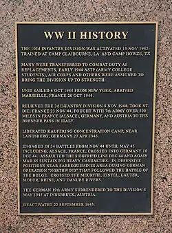 After Victory in Europe Day, the division received occupational duties until it left for home and inactivation. It returned to the continental U.S. on 10 September 1945, and was inactivated on 22 September 1945 at Camp Kilmer, New Jersey.