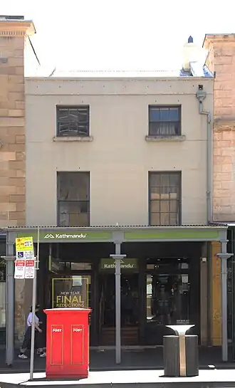105 George Street, The Rocks is a heritage-listed shop and former residence located at 105 George Street, in the inner city Sydney suburb of The Rocks in the City of Sydney local government area of New South Wales, Australia. It was built during 1851 by persons unknown and redeveloped in 1985 by the Sydney Cove Redevelopment Authority with Co-Wyn Construction. It is also known as Kathmandu (current) and Beach Culture and Dorian Scott (former). Property NSW, an agency of the Government of New South Wales. It was added to the New South Wales State Heritage Register on 10 May 2002.[1]