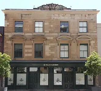The building were again extensively remodelled on the ground floor for the opening of the Rockpool restaurant by Neil Perry, Rockpool opened in February 1989. In 2009 the building underwent internal and external conservation works and a replica sandstone carved pediment was reinstated onto the roof.[1] As of January 2019 the tenant was William Blue Dining, a 60-seat student-run restaurant that provides vocational students from the William Blue College of Hospitality Management with the opportunity to learn up-market food and beverage service skills in a live environment.[2]