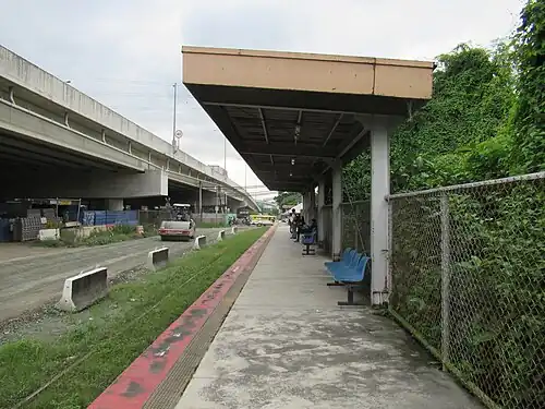 The station was meant to be a part of a revived commuter rail system, built during the term of Gloria Macapagal Arroyo. After being constructed, no services to this station were ever provided until August 1, 2018, when it was opened for the Caloocan-Dela Rosa shuttle line.[1] The northbound line is temporarily dismantled to give way for further works in NLEX Segment 10.1, and is currently a temporary single-line track. It was the terminus of said line until the clearing and recondition of the rails in the Caloocan station at Samson Road finished.[2][3] The line has since been upgraded to terminate at FTI station, with this station no longer the terminus since September 10.