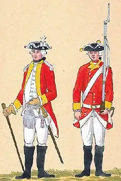 The 10th Regiment of Foot (Polish: 10. regiment pieszy, also known as the 10th Regiment of Foot of Działyński and the Radzyński Regiment) was a Polish military unit. Initially formed in 1775 under the name of Regiment of Foot of the Land of Rydzyna, it was stationed in Rydzyna as a private unit of Col. Ignacy Działyński. Relocated to Warsaw, in 1789 it received the ordinal number of 11, and then 10 in 1794.[1] A part of garrison of the city of Warsaw,[2] it used to be stationed in the Ujazdów Castle.[3] It took part in the Warsaw Uprising (1794) and formed the core of the Polish forces taking part in the fights. Among other battles it took part in fights at Swisłocz, Zelwa, Izabelin, Piaski, Granne, Krzemień, Biała, Chełm, Kurów, Gołków, the defence of Praga, defence of Wola and the battle of Maciejowice.