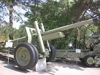 122 mm corps gun M1931/37 (A-19) (Russian: 122-мм корпусная пушка обр. 1931/1937 гг. (А-19)) was a Soviet field gun developed in late 1930s by combining the barrel of the 122 mm gun M1931 (A-19) and the carriage of the 152 mm howitzer-gun M1937 (ML-20). The gun was in production from 1939 until 1946. It saw action in World War II (primarily with corps and RVGK artillery of the Red Army) and remained in service for a long time after the end of the war. Vehicle-mounted variants of the gun were fitted to the IS-2 and IS-3 tanks of the Iosif Stalin series of tanks and the ISU-122 self-propelled gun.