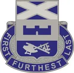 The 139th Infantry Regiment was constituted on 28 October 1954 in the North Carolina Army National Guard, and assigned to the 30th Infantry Division. Its units were organized from existing elements of the other two North Carolina infantry regiments, the 119th and 120th, and the regiment was headquartered at Reidsville. The 139th was created to replace the division's 117th Infantry Regiment from Tennessee, which was used to create the 30th Armored Division that year.[5] During the Pentomic reorganization on 1 April 1959, the regiment was broken up and consolidated with the 120th Infantry, except for the 3rd Battalion, which consolidated with the 196th Armor.[6] The 3rd Battalion became the 1st Reconnaissance Squadron, 196th Armor.