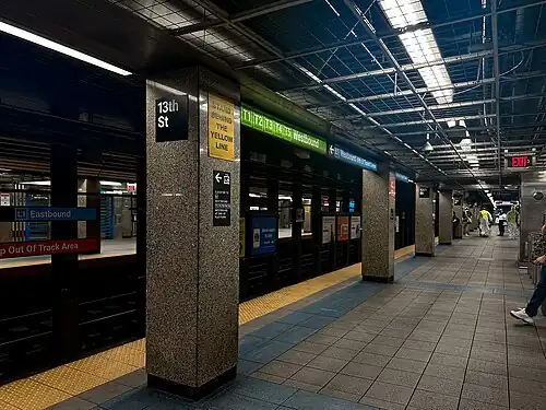 ![]() 13th Street L1 Eastbound platform | ||||||||||||||||||||||||||||||||||