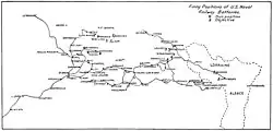 Map showing firing locations and targets in France, 1918