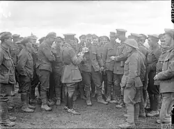 The brigade served with the 50th Division on the Western Front for the rest of the war. In 1915, it took part in the Second Battle of Ypres and the Battle of the Somme in 1916.[4] In 1917, it took part in the Battle of Arras and the Third Battle of Ypres. As a result of the losses suffered in the Ludendorf Offensive (First Battle of the Somme and Battle of the Lys), the brigade had to be comprehensively reorganized.[5] On 15 July 1918, the Northumberland Fusiliers battalions were reduced to cadre and transferred to Lines of Communication duties;[6] they were replaced by two battalions from Salonika (3rd Royal Fusiliers ex 85th Brigade, 28th Division and 13th Black Watch ex 81st Brigade, 27th Division) and another (2nd Royal Dublin Fusiliers) that had been in France since August 1914.[7] Thereafter, it took part in the Battles of the Hindenburg Line and the Final Advance in Picardy.[5]