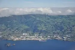 The epicenter of the earthquake is estimated to have been some kilometers north-northwest of the town, in the area of Monte Escuro. It culminated in a scale X event.[3] Landslides followed throughout the island. It is likely that they were affected by the saturation of the sub-soil from by torrential rainfall several days earlier. The island's volcanic terrain, consisting of low-density pyroclastic materials (such as the pumice stones that comprised the flanks of the Água do Pau Massif), was susceptible to landslides, and eventually resulted in the creation of lahars. Similar conditions on the northeast coast of Faialense Caldera occurred during the July 1998 earthquake.