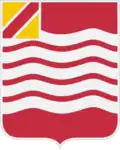- "Gules five closets wavy argent, on a canton or a bend sinister of the field (and for unofficial use pendant to the shield a French Croix-de-Guerre with palm proper)."