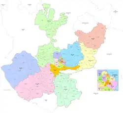 Under the 2023 districting plan adopted by the National Electoral Institute (INE), which is to be used for the 2024, 2027 and 2030 federal elections,[9] Jalisco's 15th district is located in the east of the state, along the border with Guanajuato and Michoacán, and comprises 210 electoral precincts (secciones electorales) across 11 of the state's 125 municipalities:[10]