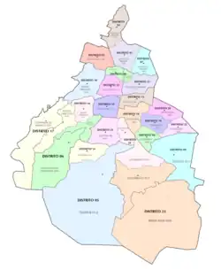 - ^ "Descriptivo de la distritacion federal: Ciudad de México" (PDF). Cartografía. INE. March 2017. Archived from the original (PDF) on 19 May 2023. Retrieved 9 July 2025.