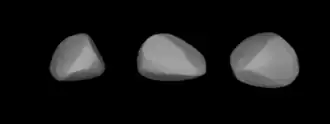 - ^ a b Hanus, J.; Durech, J.; Broz, M.; Marciniak, A.; Warner, B. D.; Pilcher, F.; et al. (March 2013). "Asteroids' physical models from combined dense and sparse photometry and scaling of the YORP effect by the observed obliquity distribution". Astronomy and Astrophysics. 551: 16. arXiv:1301.6943. Bibcode:2013A&A...551A..67H. doi:10.1051/0004-6361/201220701. S2CID 118627434.