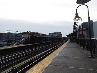This elevated station has three tracks and two side platforms.[20] The 4 stops here at all times.[21]