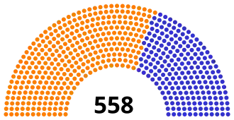 All 558 seats in the House of Commons 280 seats needed for a majority | ||||||||||||||||||||||