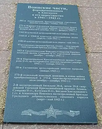 ![]() Memorial plaque in Zlatoust which lists the 2nd Formation of the 171st near the top | |