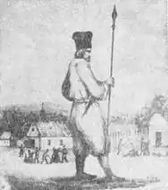 The Poles took steps to attract labourers, known as settlers from other towns, to the abandoned villages, promising them exemption from service duties for 15-30 years. But years passed, benefits ran out, dominion was introduced, duties were increased, new ones were introduced. Rent had a major impact on the peasantry. In addition to lordships and other direct taxes and tributes, indirect taxes were applied, among which propination was the most difficult. The lords had the exclusive right to produce and sell spirits. They forced peasants to buy a certain amount of vodka regardless of their consumption needs. The peasants also suffered at the outposts of the Polish army.[1][2]