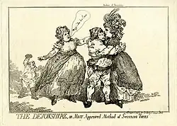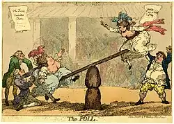 The election was notable for being one of the first in history in which visual propaganda, in the form of caricatures satirising or promoting the candidates, played a significant role. Caricatures appeared almost daily, allowing the young artists Thomas Rowlandson and James Gillray both to make their names on the strength of their satirical output. After the election, one of the leading London print sellers William Humphrey, gathered together a number the election plates to illustrate a detailed blow-by-blow account of the election.[1] It quickly ran to a second edition.