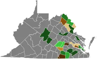 | Henrico | 40.95% | 104 | 59.05% | 150 | 254 |