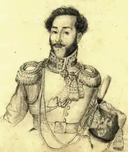These incidents rekindled nationalism in Wallachia, albeit confined to a relatively small portion of the elite, the "National Party".[17] Its roots reached back to 1798, when Scarlat Câmpineanu and other boyars founded a group of that name, inspired by the French First Republic.[18] Reconstructing the party, Ioan Câmpineanu circulated a constitutional project that would have established a crowned republic,[19] before being publicly shunned and forced into exile.[20] Lăcusteanu, at the time an officer in the Wallachian Militia, claims that: "The aristocracy and the people were Russophiles, words such as 'patriotism' and 'public opinion' were only used by the prince and a couple of boyars."[21] Nevertheless, as noted by scholar N. N. Hêrjeu: "With all their submission to the Muscovites, the boyars quickly understood that Russia only offered them apparent protection, in order to slowly strip them of their privileges. In fact, they hated both the Russians and the Turks."[22] The chronicler Zilot Românul recorded that the boyars were particularly worried by Russian tax farming, which they considered predatory.[23] Among the more powerful boyars, some also opposed the prince, but for purely personal reasons—they included Alecu Filipescu-Vulpea, who had seduced Ghica's divorcee mother, and was therefore detested by the monarch.[24]