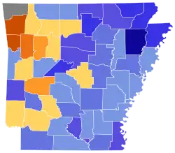 - ^ a b c d Benton, Madison, and Newton counties did not report results in time to be counted towards the total.