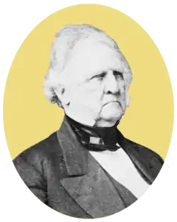 Encouraged by Fillmore's professed lack of desire to pursue the Whig nomination, Webster launched another campaign for the presidency in 1851.[3] Fillmore was sympathetic to the ambitions of his secretary of state, but he was unwilling to completely rule out accepting the party's 1852 nomination, as he feared doing so would allow Seward to gain control of the party through Scott.[4] Scott had supported the Compromise of 1850, but his association with Seward made him unacceptable to Southern Whigs.[4] As Southerners retained a lingering distrust of Webster, they threw their backing behind Fillmore.[5] Thus, Scott emerged as the preferred candidate of most Northern Whigs, Fillmore became the main candidate of Southern Whigs, and Webster was only able to win backing from a handful of delegates, most of whom were from New England.[6]