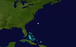 The ship Star of the South experienced heavy gales offshore the East Coast of the United States on June 30.[6] HURDAT lists the first tropical cyclone of the season beginning at 0000 UTC, while located about 100 miles (160 km) southeast of Cape Hatteras, North Carolina.[7] The storm moved slightly north of due east with winds of 60 mph (95 km/h).[7] It was last noted about 265 miles (425 km) north-northwest of Bermuda by the bark Virginia late on July 1.[6][7] Climate researcher Michael Chenoweth argued in a 2014 study that weather maps support the theory that a low-pressure area formed "along a sharp temperature boundary", making this system an extratropical cyclone.[8]