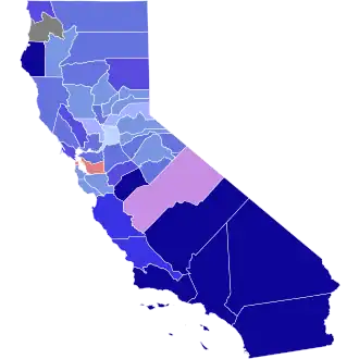 | Contra Costa | 532 | 60.80% | 270 | 30.86% | 73 | 8.34% | 0 | 0.00% | 262 | 29.94% | 875 |