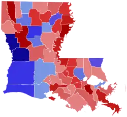 ![]() Election results by parish Kellogg: 50-60% 60-70% 70-80% 80-90% 90-100% McEnery: 50-60% 60-70% 70-80% 80-90% 90-100% | ||||||||||||||||||||