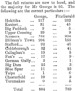 - ^ a b c d "The Hokitika Election". West Coast Times. No. 2882. 29 June 1878. p. 2. Retrieved 24 February 2015.